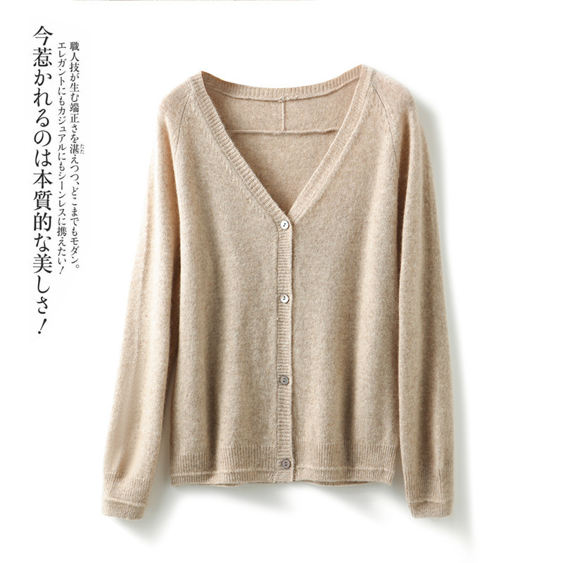 2024年秋冬新作カシミヤカーディガン女性100純カシミヤvネックコート長袖ゆったりニット