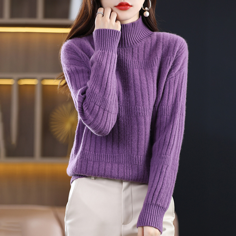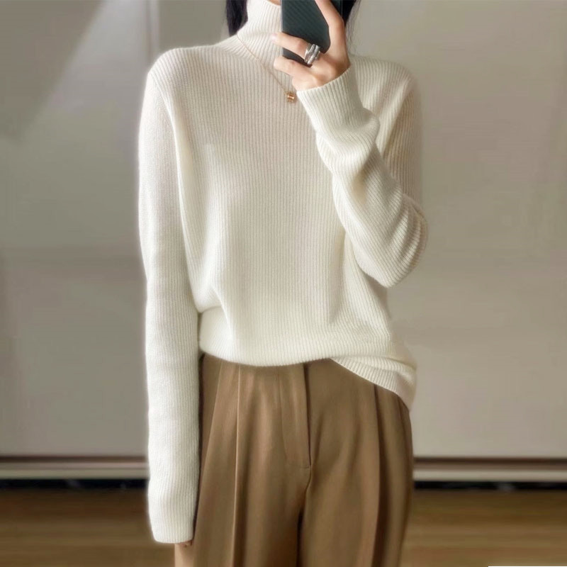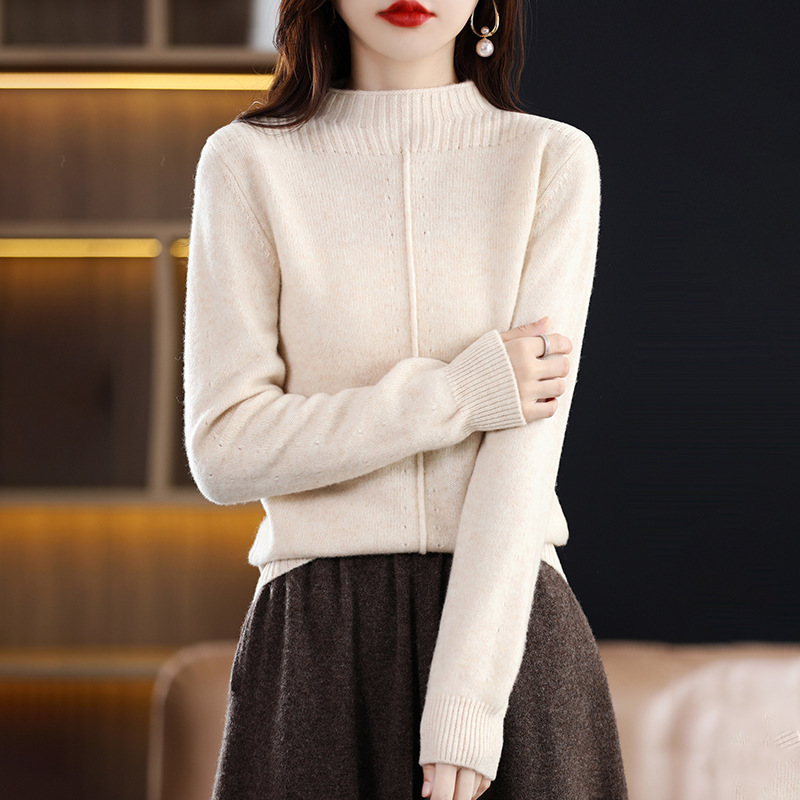 半高襟シンプルな純色のピットは肩の袖に落ちてゆったりとしたカジュアルな通勤秋の新しいウールの女性のニットウェアです。