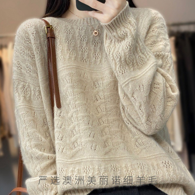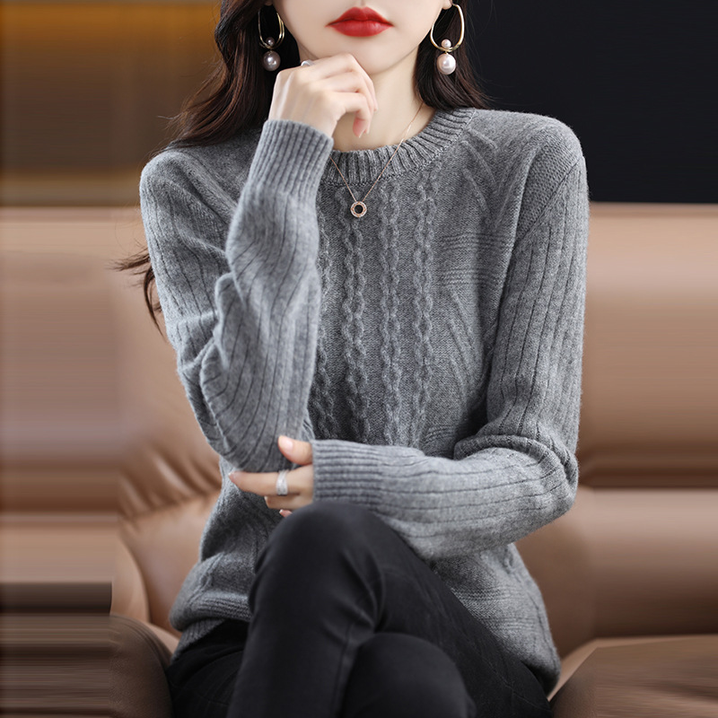 重いポンドは花の丸首のウールのセーターの女性の頭を捻ってゆったりしています。2023秋冬の新型の気質の上着のウールは底のセーターを打ちます。
