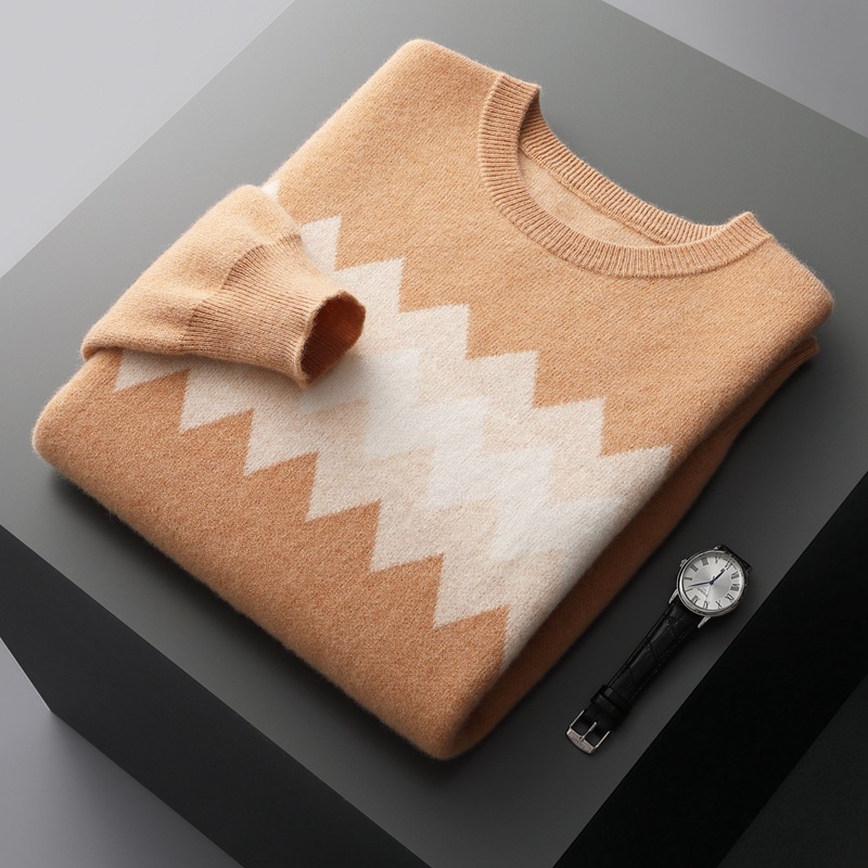 秋冬の新型男性丸首カシミヤのジャカードの厚手のプルオーバー