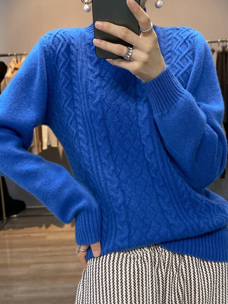 半高襟のシンプルな純色の席はプルオーバーを編んでいます。