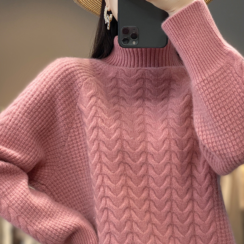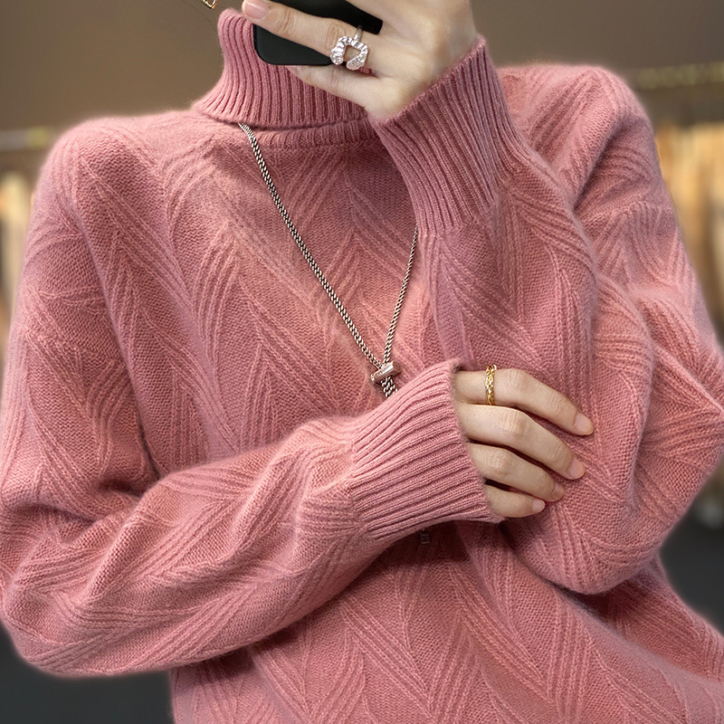 100全ウール高襟厚手レディースニット22秋冬新作純色セーター麦穂デザインネジ