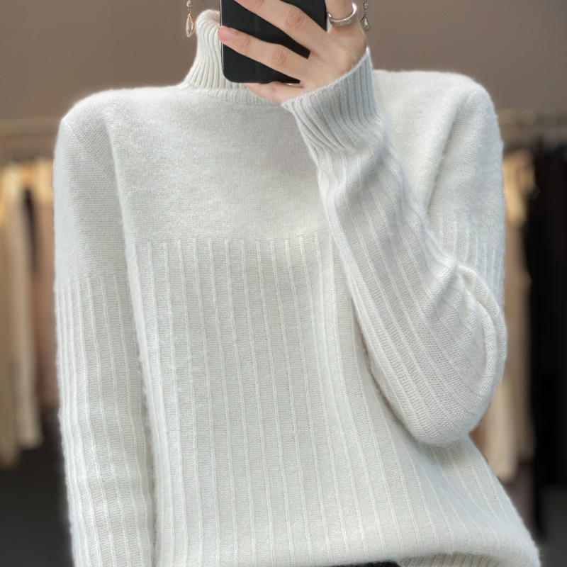 欧品のウールのセーターの女性の毛の中に秋冬のゆったりしている百合の頭の洋風のセーターの白い高襟の底のニットを掛けます。