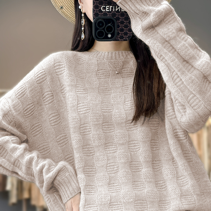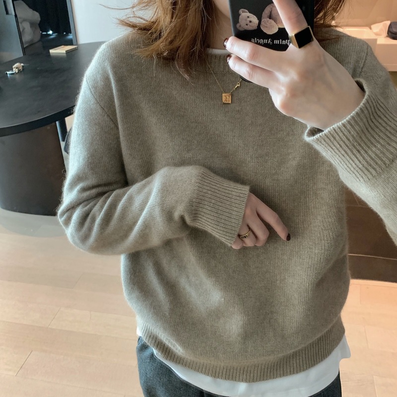 100全セーター2023秋冬新作丸首カシミヤさんの怠惰で柔らかいモチモチのニットミルクティー系セーター