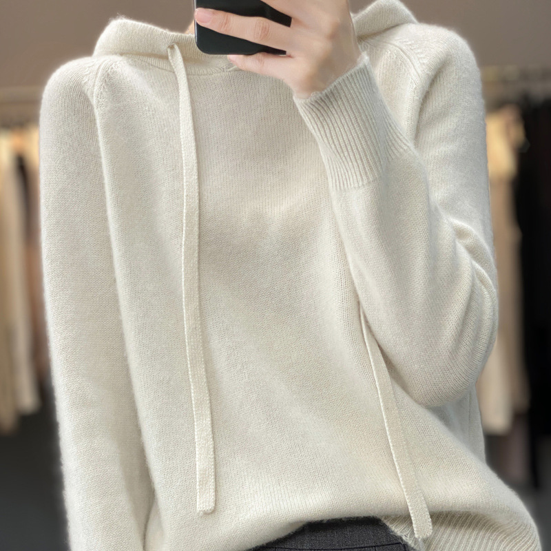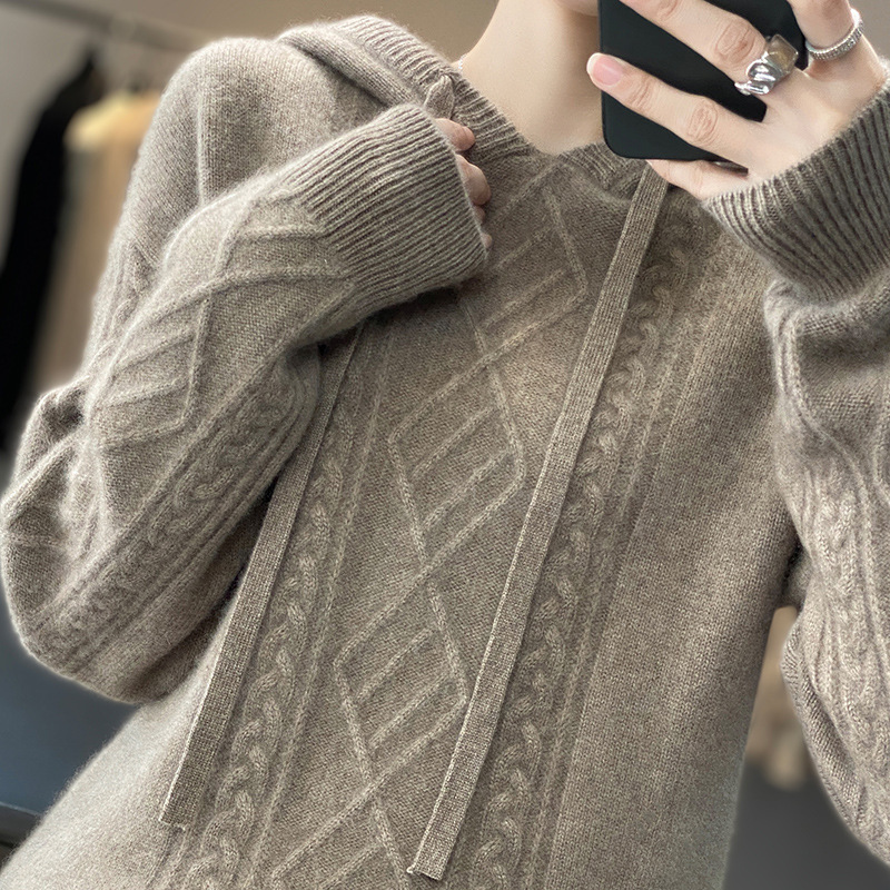 純ウールのフード付きセーター2023秋冬の新型女性のゆったりとしたデザイン感のある帽子のプルオーバーは上着を厚くします。