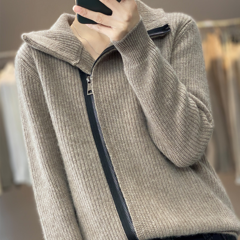 2024秋冬の新型100純ウールのカーディガンの女性はゆったりしていて、やせています。