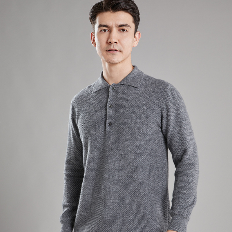 100フルウールニットメンズ秋冬poloシャツ襟カジュアルプルオーバー長袖トップス