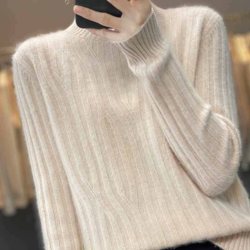 純粋なウールのニットの底のシャツの秋冬の新型のカシミヤのシャツの女性の半高の襟のゆったりしている柔らかいモチモチの気質のセーター