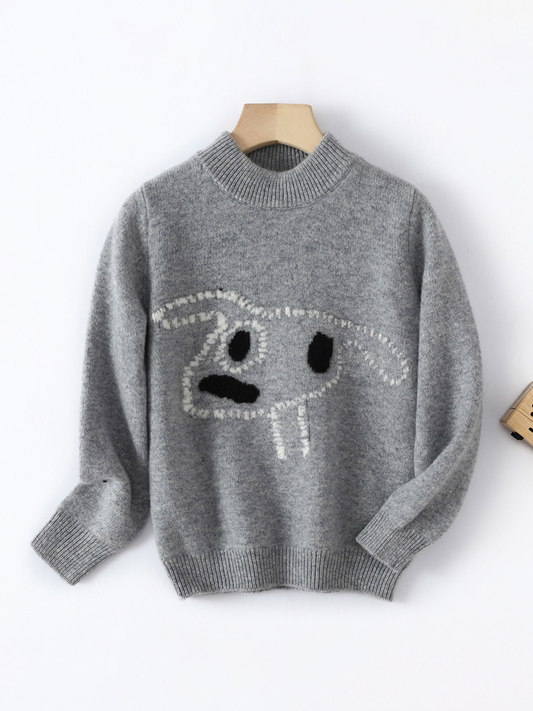 ウールの子供のセーターの男女の子供は底の子犬の図案の半高襟の赤ちゃんの漫画の上着の秋冬の新型を打ちます。