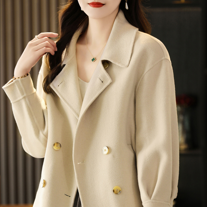 2025秋冬新作 両面ウールコート レディース ショート丈 ダブルボタン 韓国風 ゆったり 小柄さん向け 純毛コート