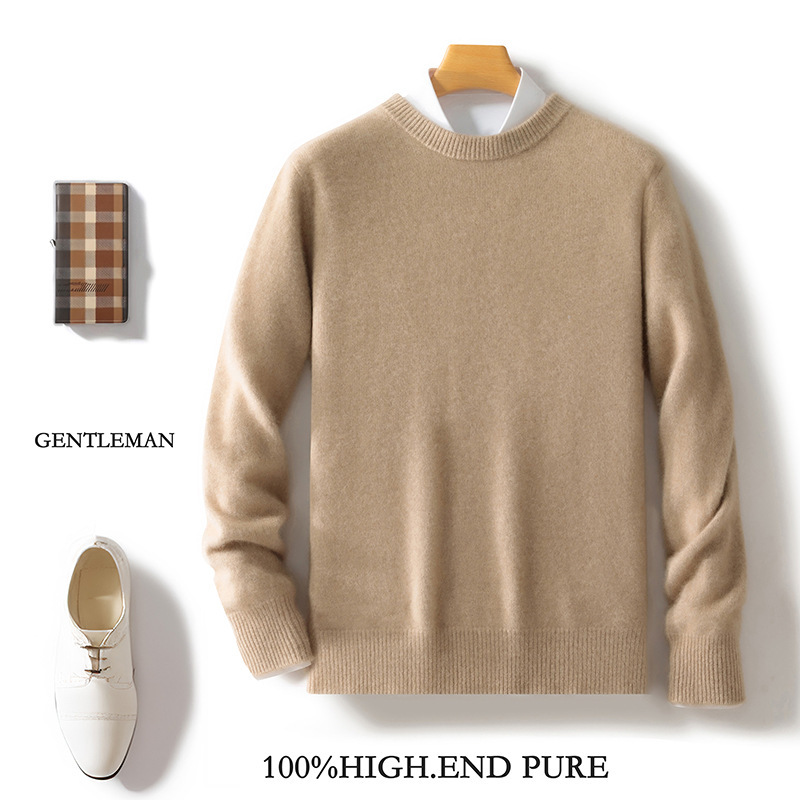 2025年ウールセーター メンズ 厚手 中高年 秋冬新作 丸首セーター 無地 ニット ベースレイヤーウールセーター