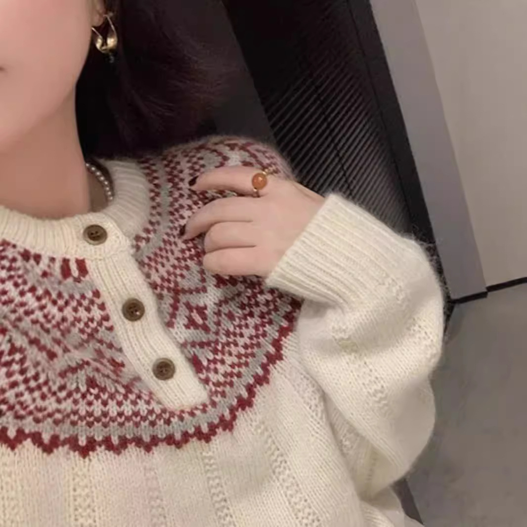 秋冬の新型韓国の丸首ジャカードのセーターの女性の頭のゆったりした厚いセーターの半開襟のニットの底のシャツのファッション