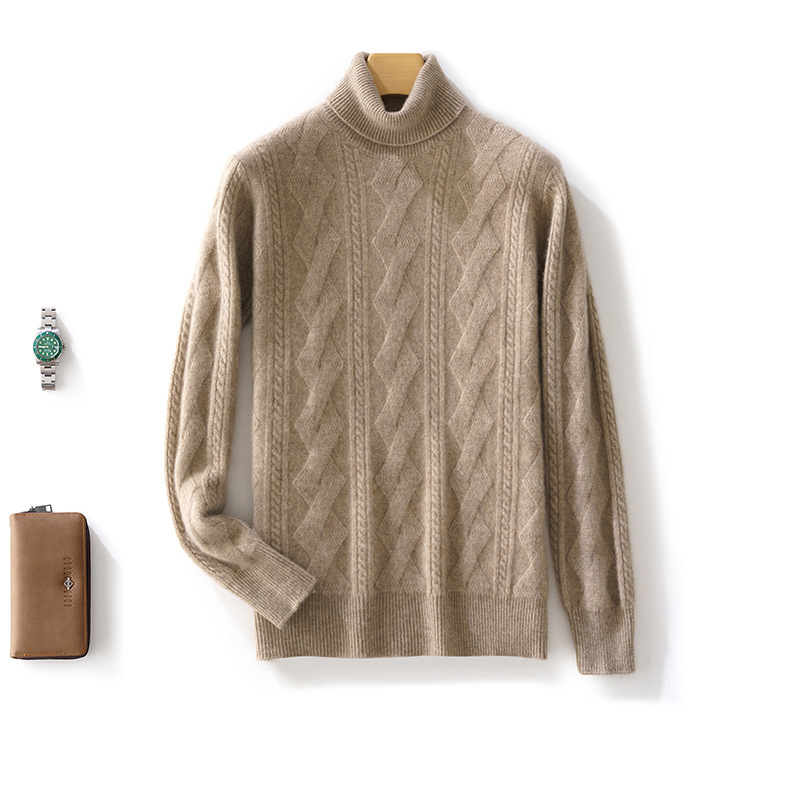 2025秋冬メンズハーフタートルネックカシミヤセータージャカードプルオーバー厚手ニットセーター無地トレンド