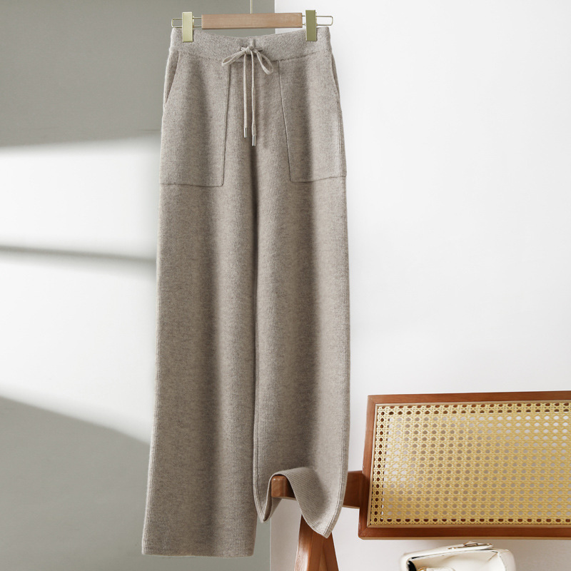 2024年秋冬新作純ウールレディースワイドレギンスカジュアルパンツハイウエストプラスポケット着痩せカシミヤパンツ