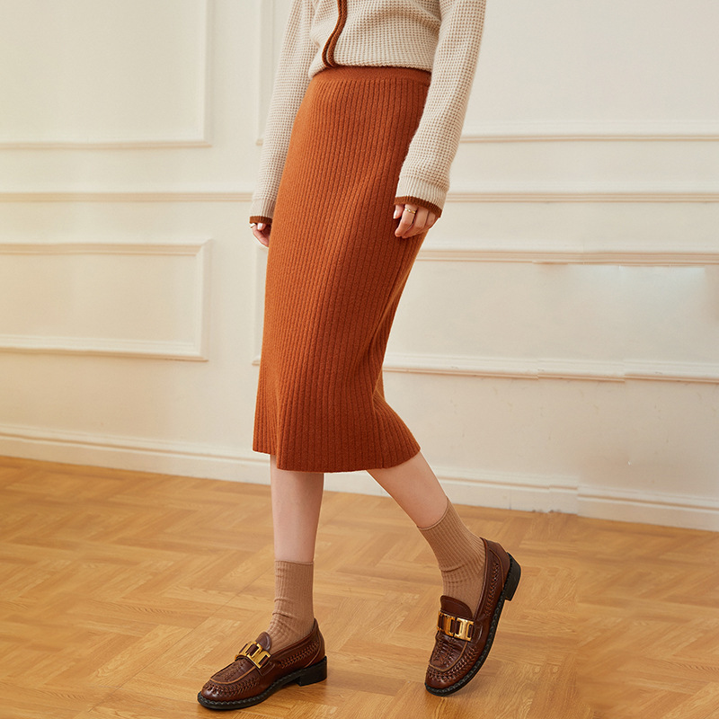 カシミヤの半身のスカートの女性は腰が高くて痩せています。