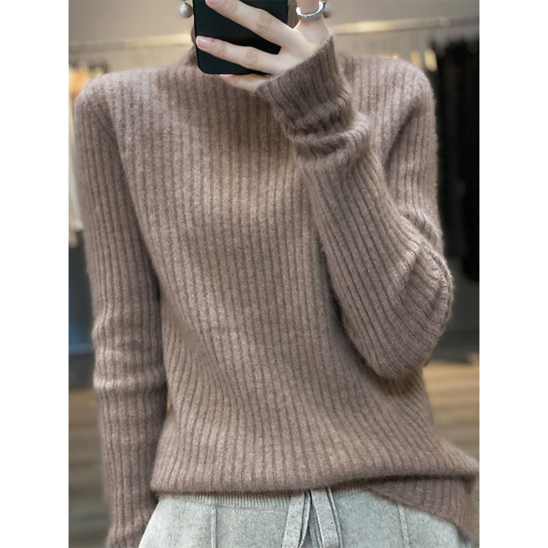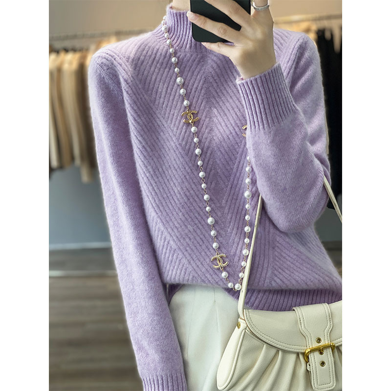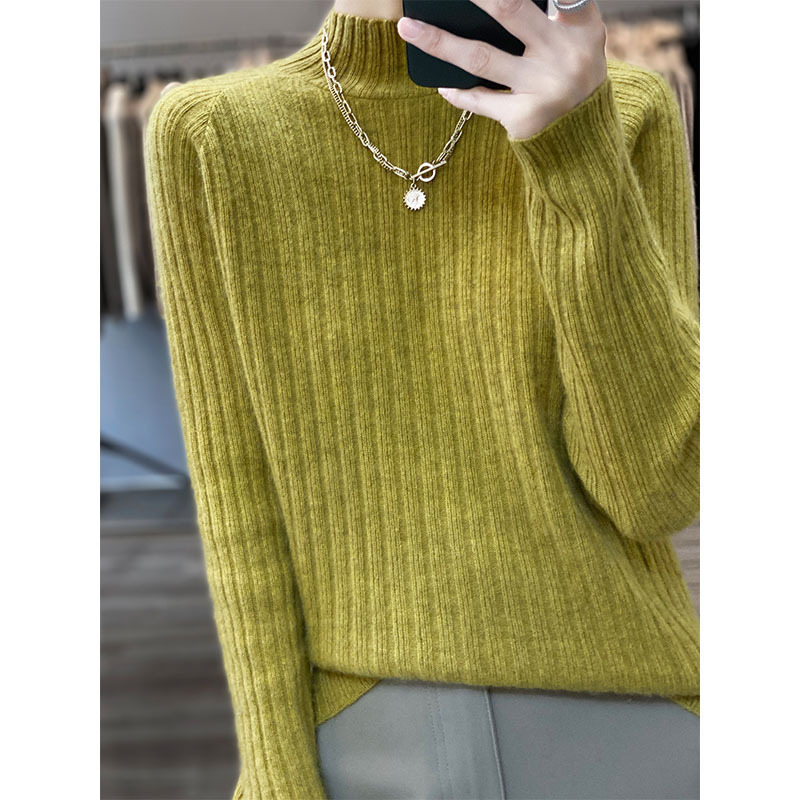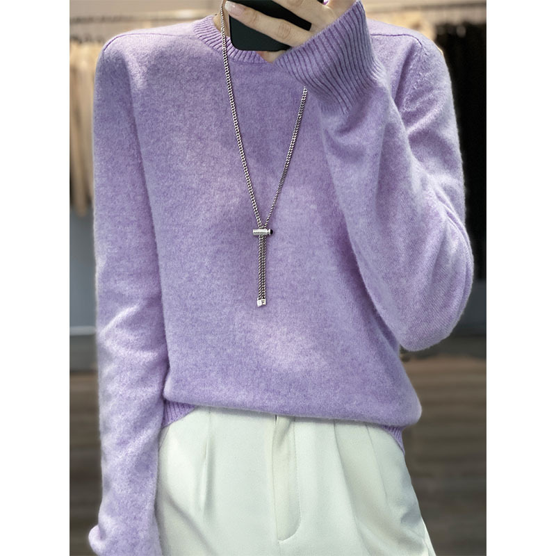 2023秋冬新作韓国版純ウール女性式ウールセーター半高襟セーター長袖プルオーバー