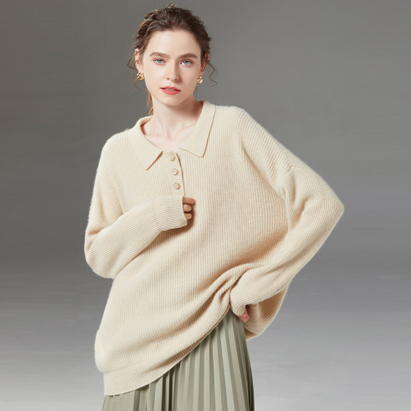 カシミヤセーター レディース ポロ襟セーター ゆったりスタイル 多用途ニットインナー 2025秋冬新作