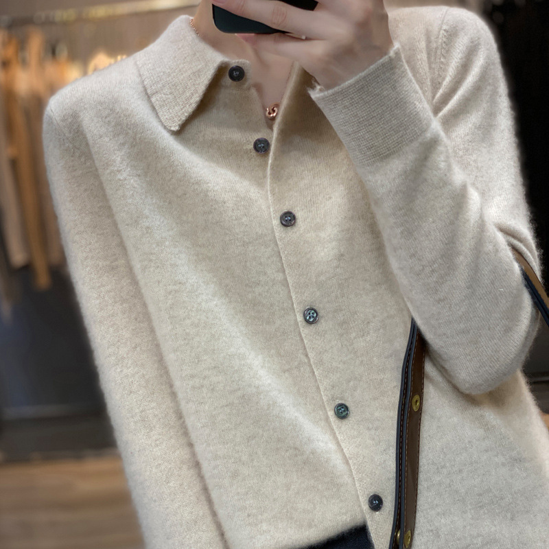 2023秋冬新作polo襟純ウール単列ボタンカーディガン