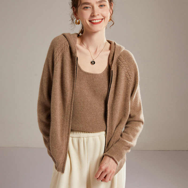純粋なカシミヤのカーディガンの女性の帽子の厚い麻の花の肩の袖のニットのコートのゆったりしているカジュアルなファスナーのセーター