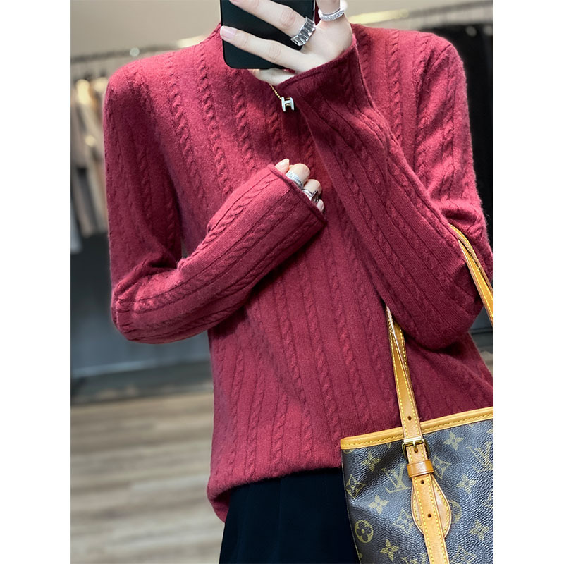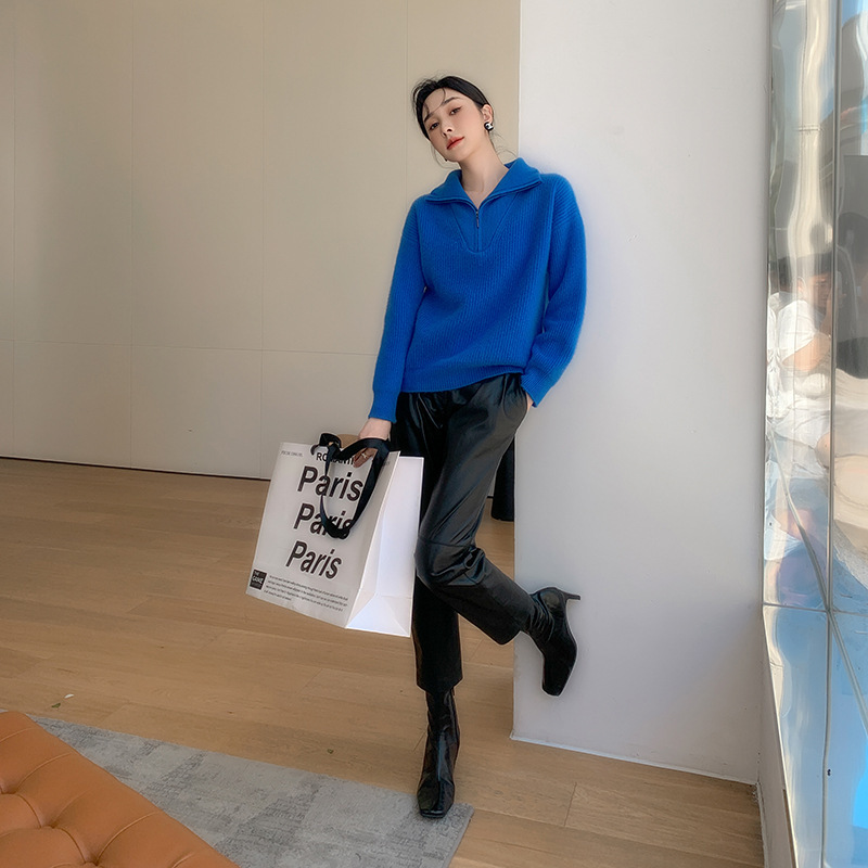 2025年新作カシミヤセーター レディース ハーフタートルネック ジップアップ 無地 ゆったり 厚手 秋冬用 元寶編み ベースレイヤーセーター