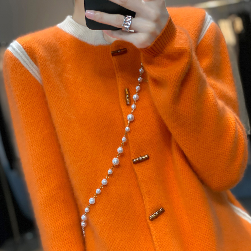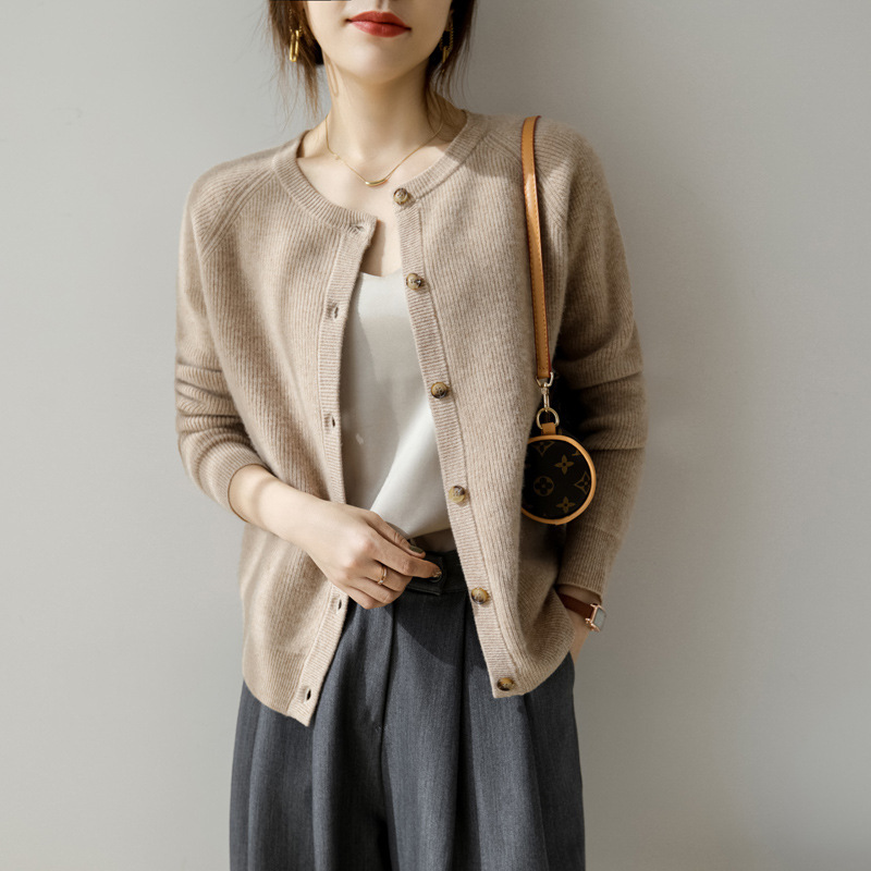 秋の婦人服、純毛セーターコート、2025年韓国版、ラウンドネックカーディガン、女性用アウター、ゆったりニット、着痩せセーター