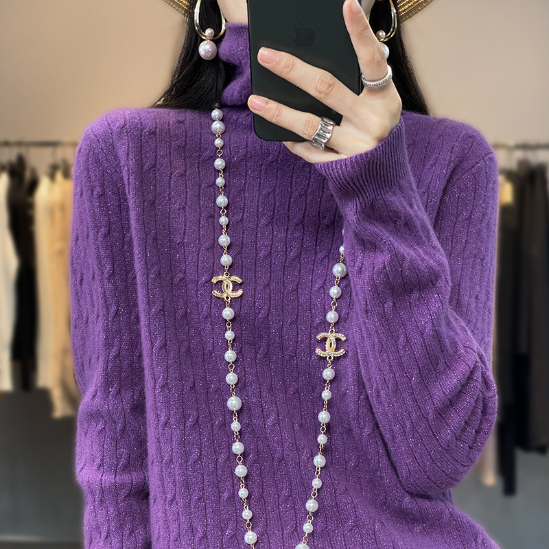 半高襟の厚いセーターの女性2023秋冬の新型の厚いウールの底のシャツのファッションの百合のニットのセーター