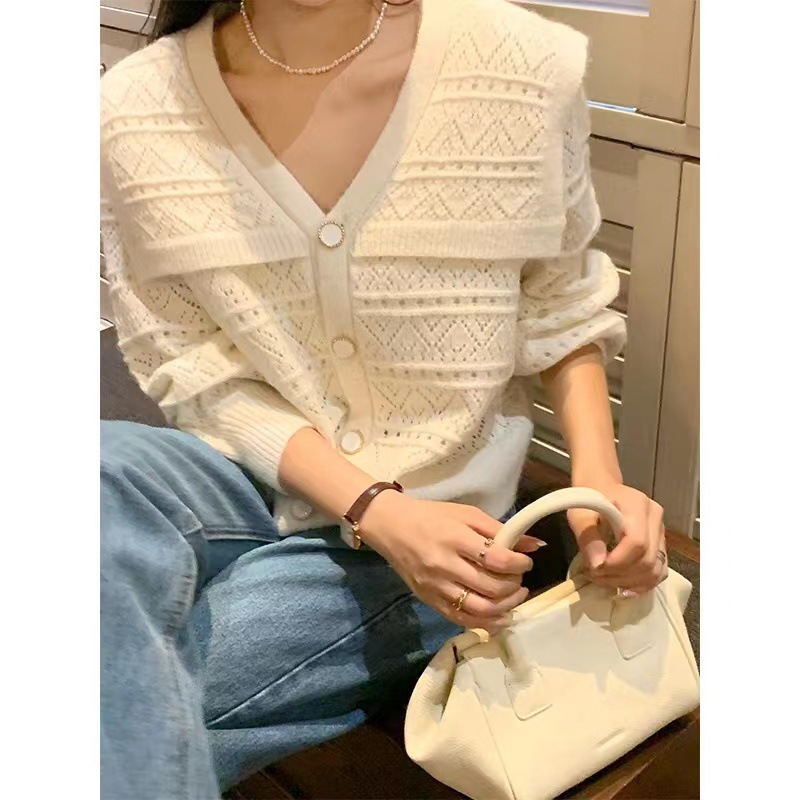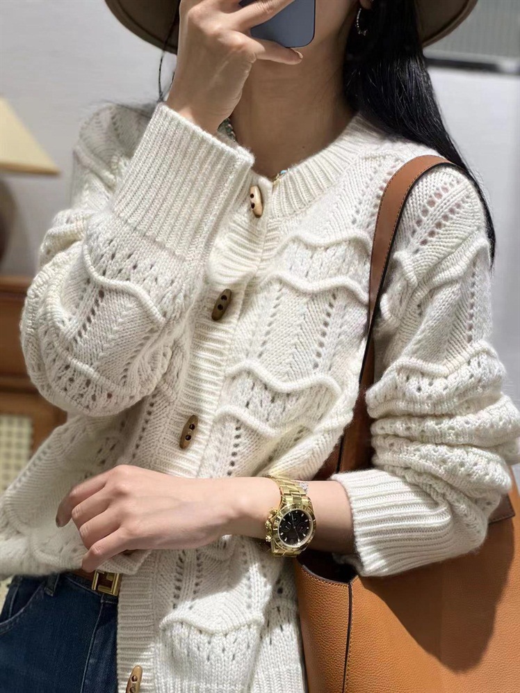 2024秋の新型ウールカーディガンの女性の透かし彫りのセーターのオーバーはゆったりしていて、やせている気質のニットの韓国版の外で掛けます。