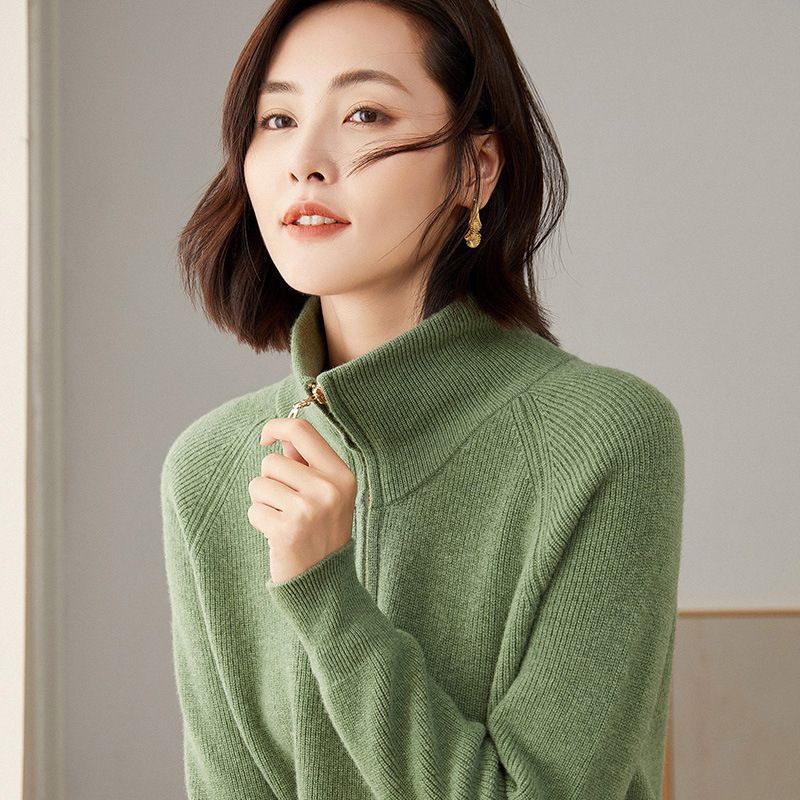 2025秋冬新作ピュアウールセーター レディース ハーフジップ ラペル付きピュアウールセーター 厚手ゆったりニットカシミヤセーター