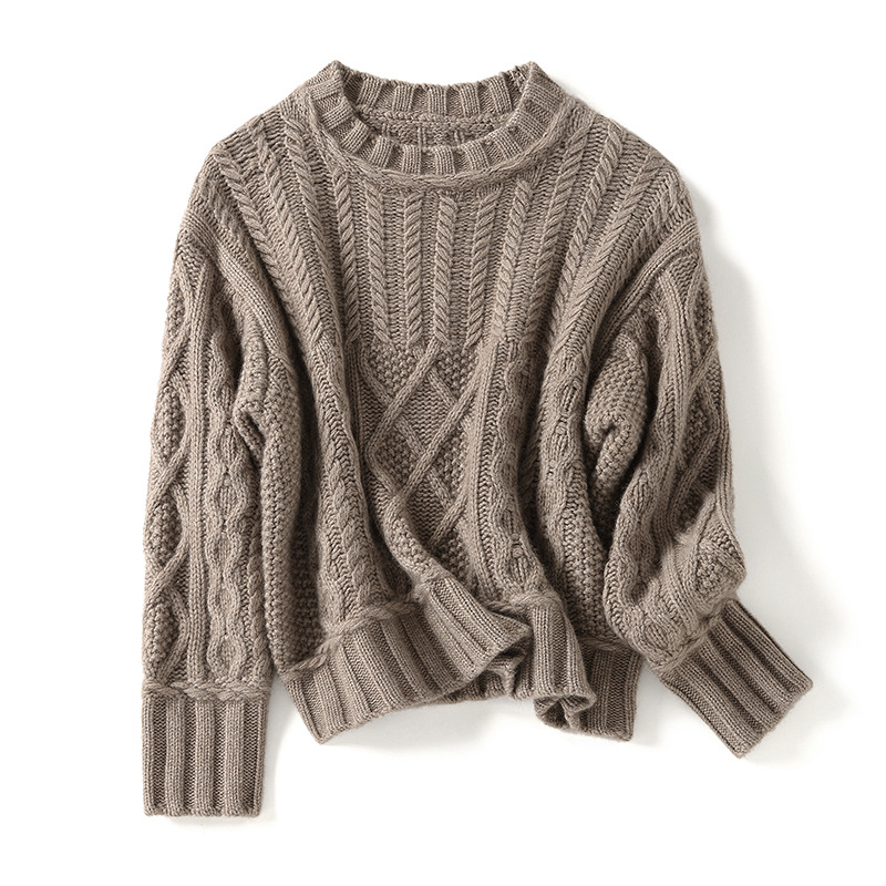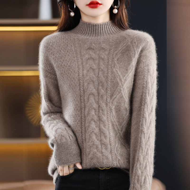 純毛秋冬ハーフタートルネックゆったりケーブル編み無地ショート丈カシミヤインナー編みセーター細毛