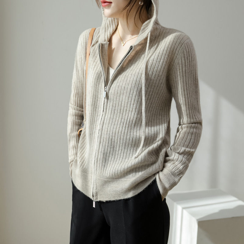 2025年 フード付きウールセーター レディース ジップアップカーディガン ダブルジップ カジュアル ゆったり フード付きニットカーディガン ショート丈トップス
