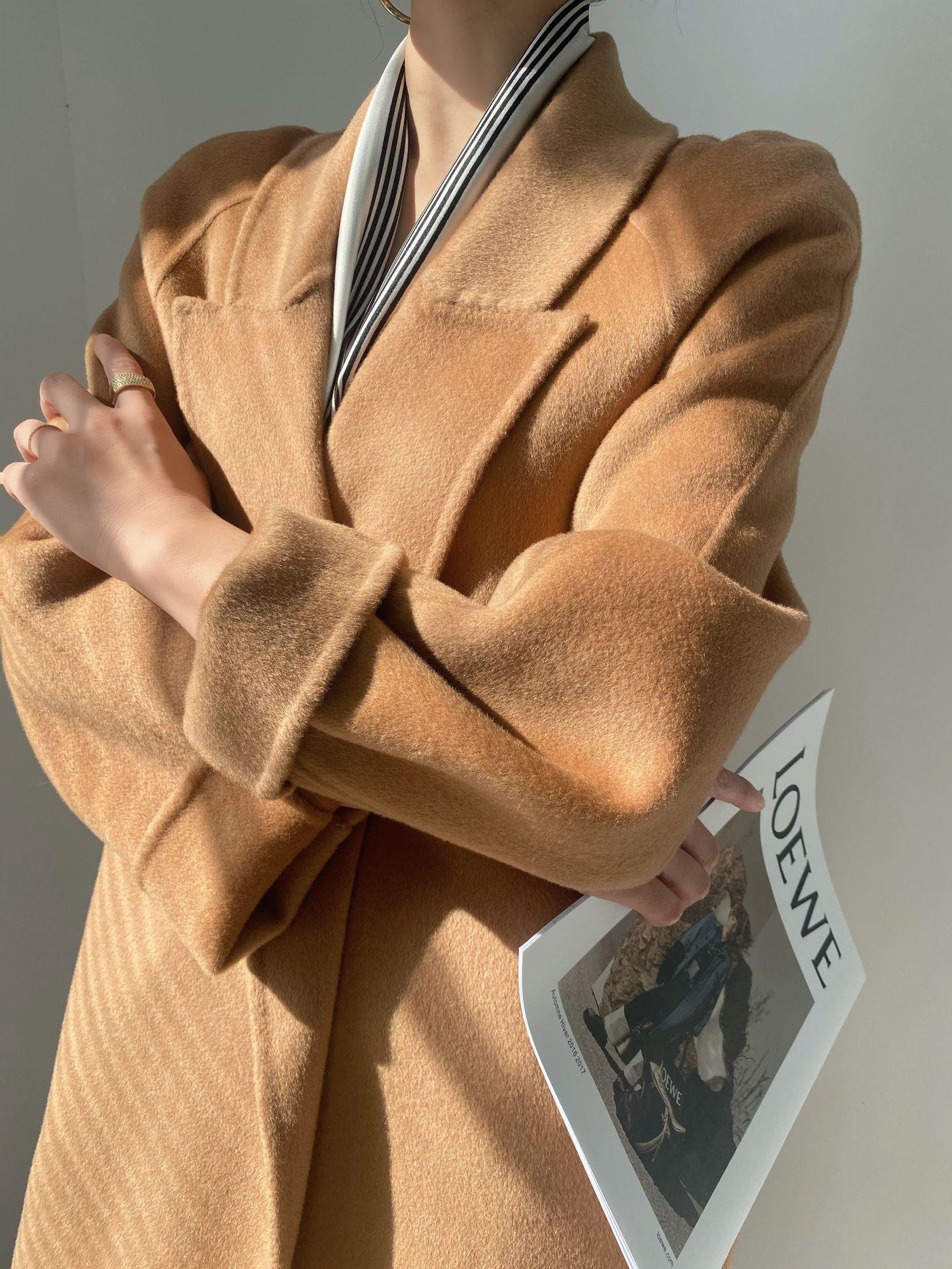 2025年秋冬新作両面カシミヤコート レディース ミドル丈 膝丈 スリムフィット ウールコート