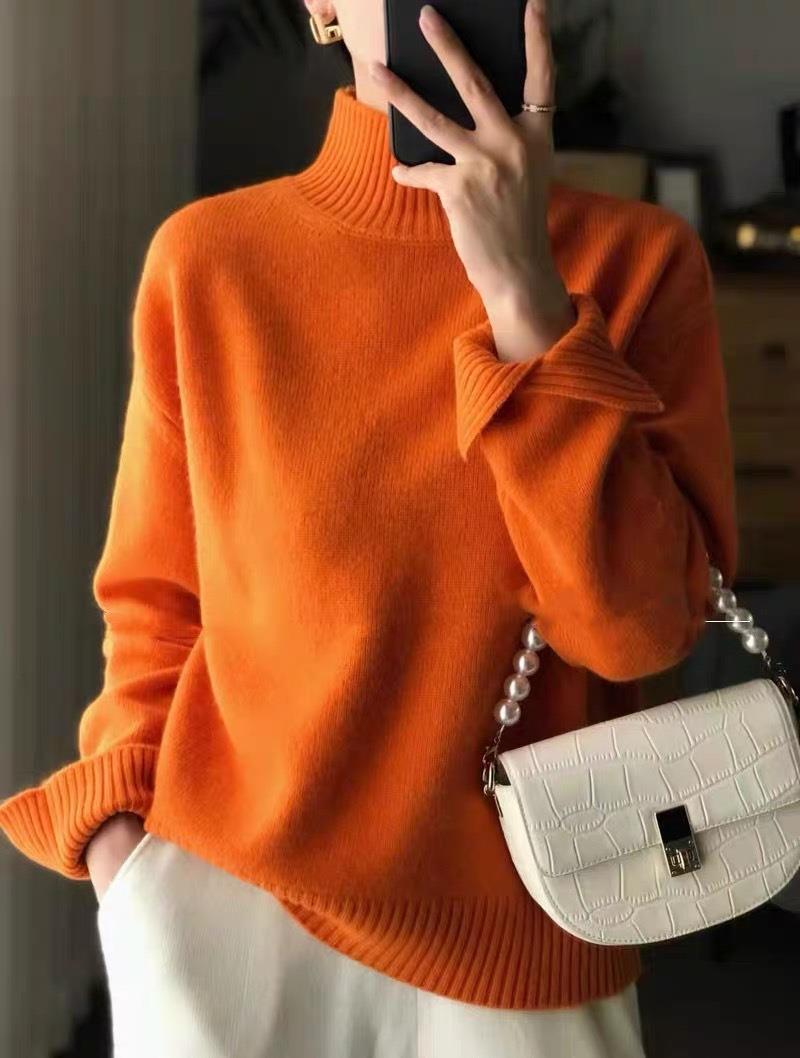 新型の厚い半高襟のカシミヤのシャツの女性の袖口のフォークのセーターのゆったりした韓国版のプルオーバー
