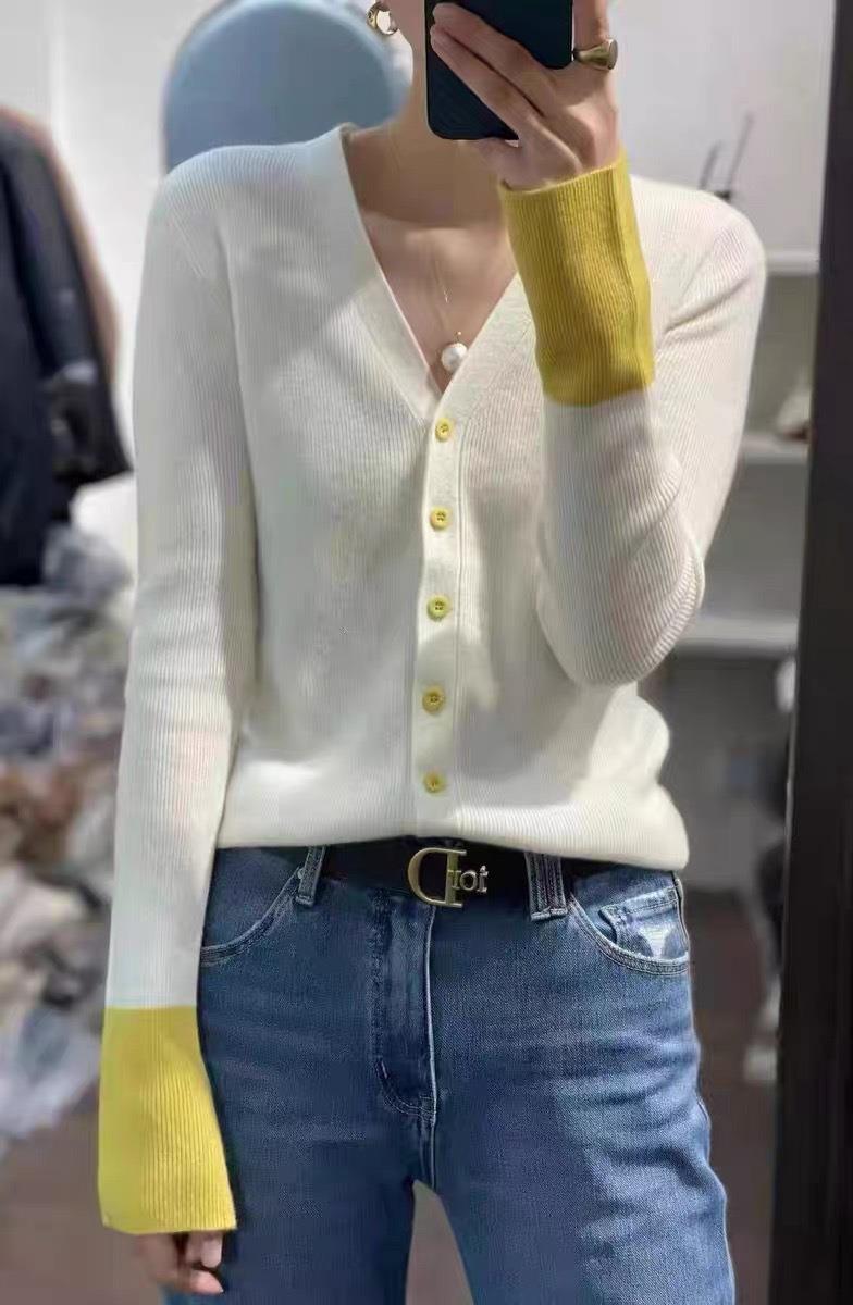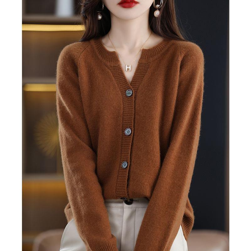 2024秋冬新作韓国版純ウール女性式セーターvネックセーター長袖修身ニットコートカーディガン