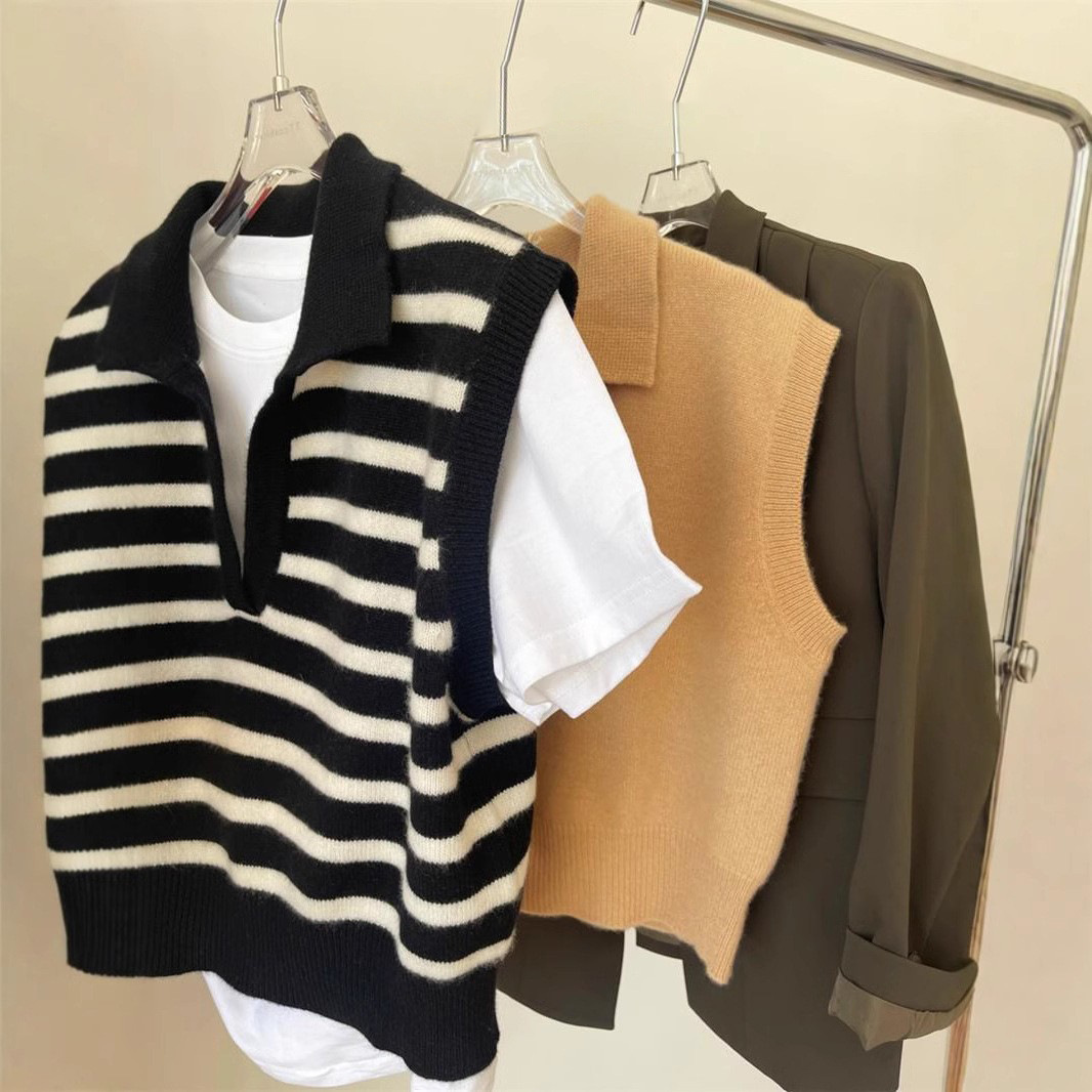 新商品純ウールベストカーディガン女性vネックゆったりニットベスト