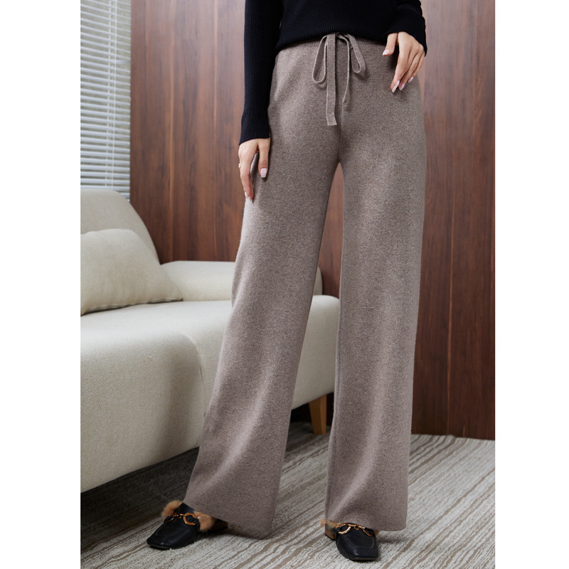 2023秋冬の全ウール100純ウールのワイドパンツのニットズボンの女性は保温して厚くてゆったりしています。