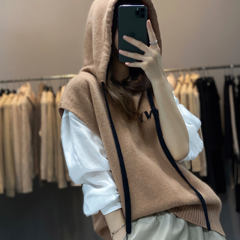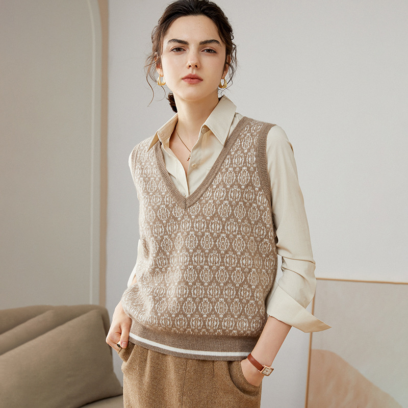 韓国版のカシミヤ馬甲さんvネックニットベストの外着22新作ジャカードの色合わせのカシミヤの肩
