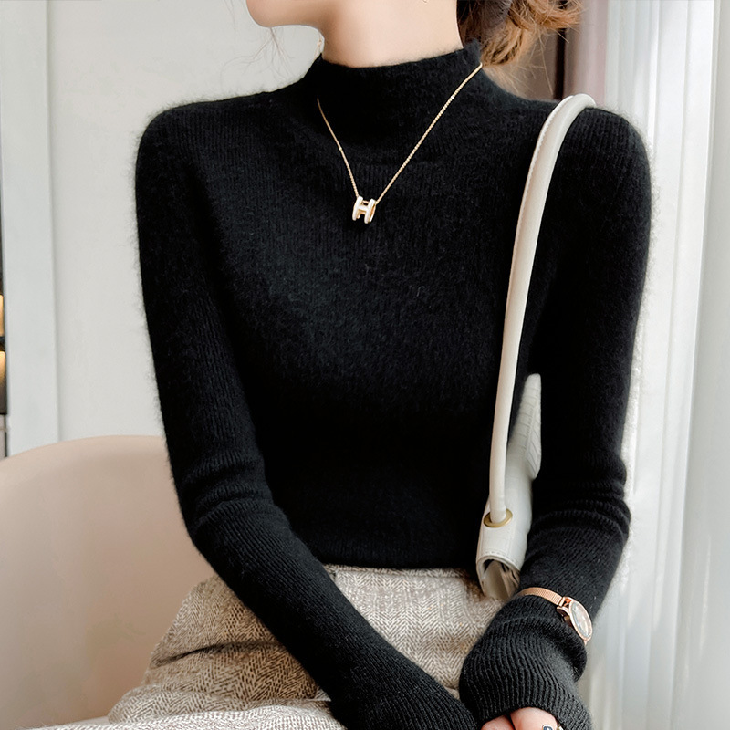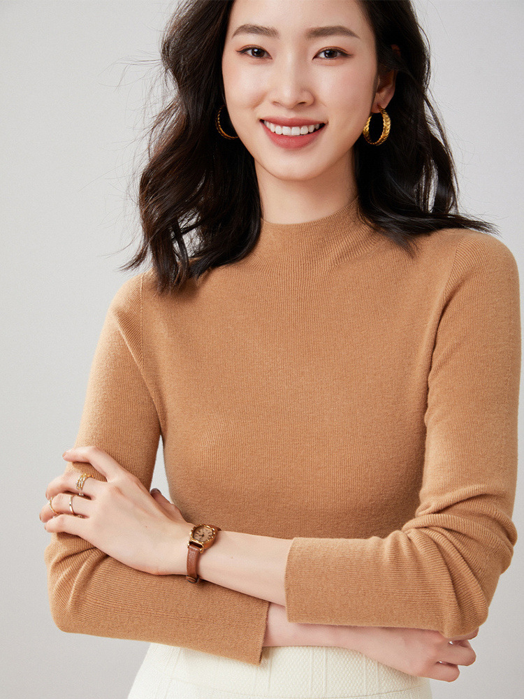 2023新型の半高襟のセーターの女性の修身の百合の上着の秋冬の長袖の授乳の底のニットの服のファッション