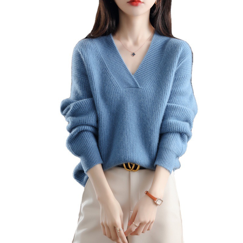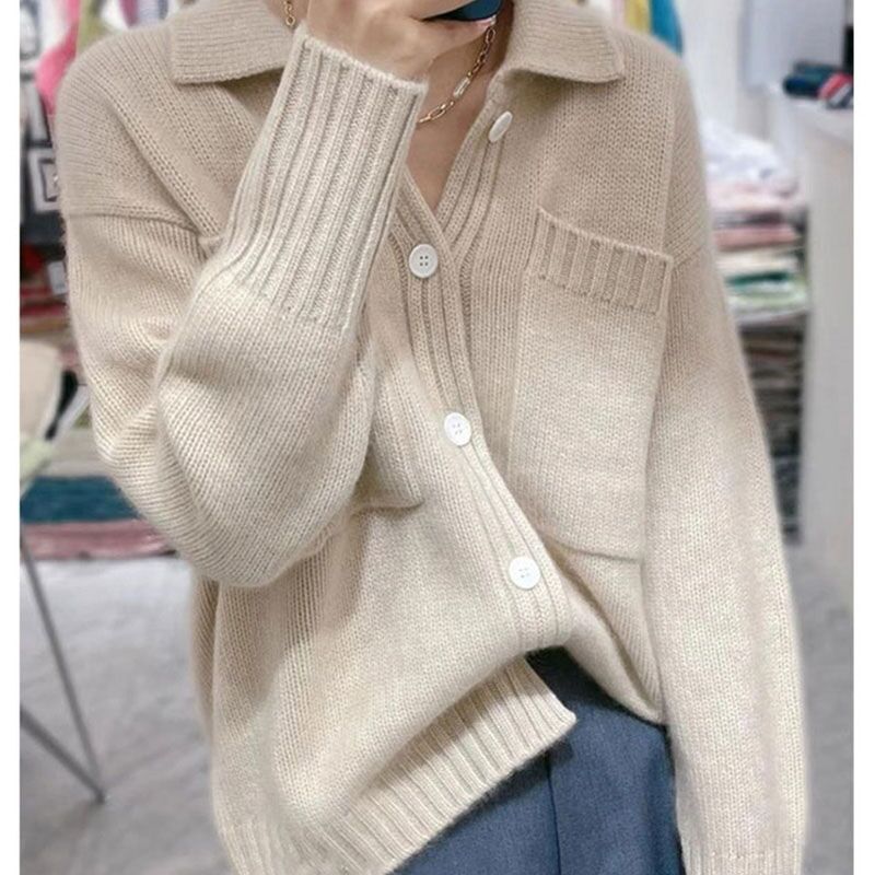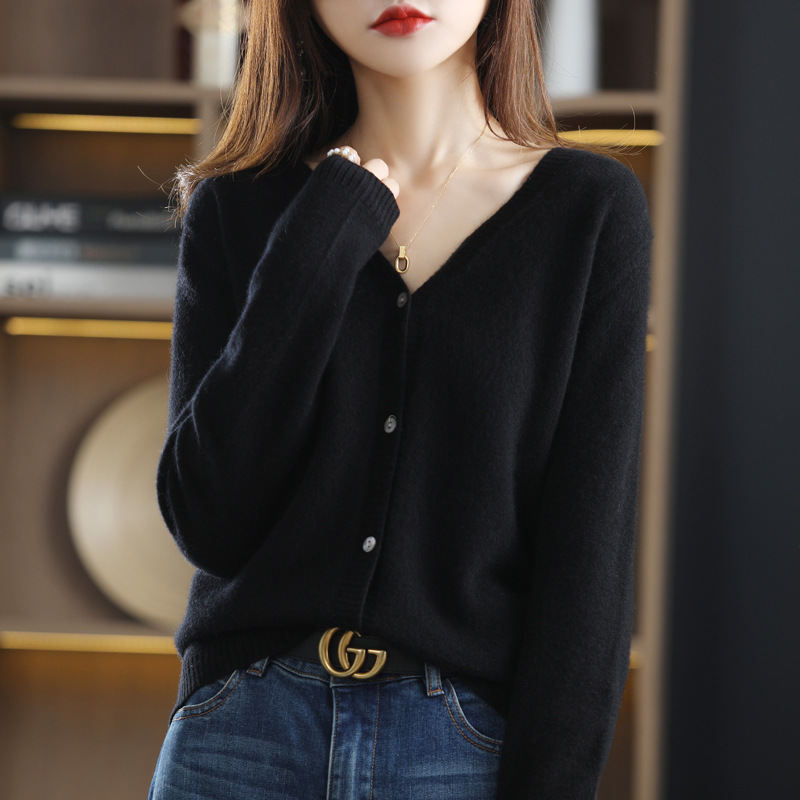 100純ウールカーディガン女性vネック秋冬新長袖セーターゆるい純色カシミヤニットカーディガンセーター