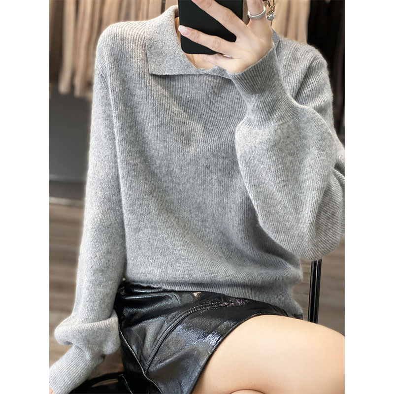 純毛2025秋冬新作レディースルーズフィットハーフタートルネックプルオーバー無地ショート丈カシミヤニットベースレイヤーセーター