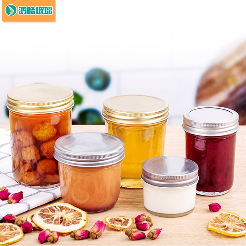 卸売り透明ガラス味噌汁瓶アルミ蓋密封キャビアガラス瓶キッチン家庭用ジャム蜂蜜瓶