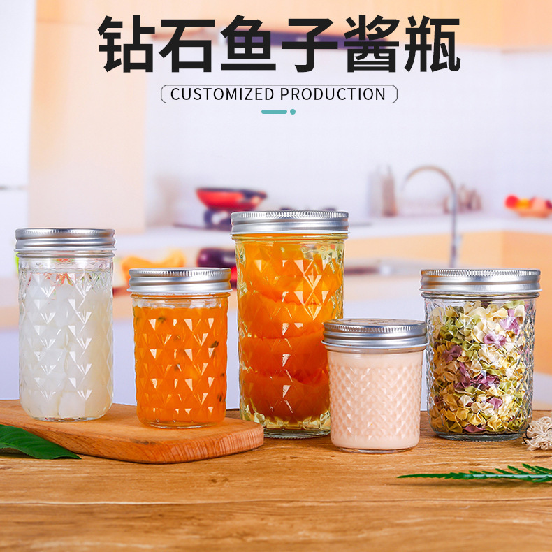 卸売りダイヤモンドキャビア瓶牛肉ソースガラスジャム瓶密封ミルク昔カップジャム瓶貯蔵物メイソンカップ