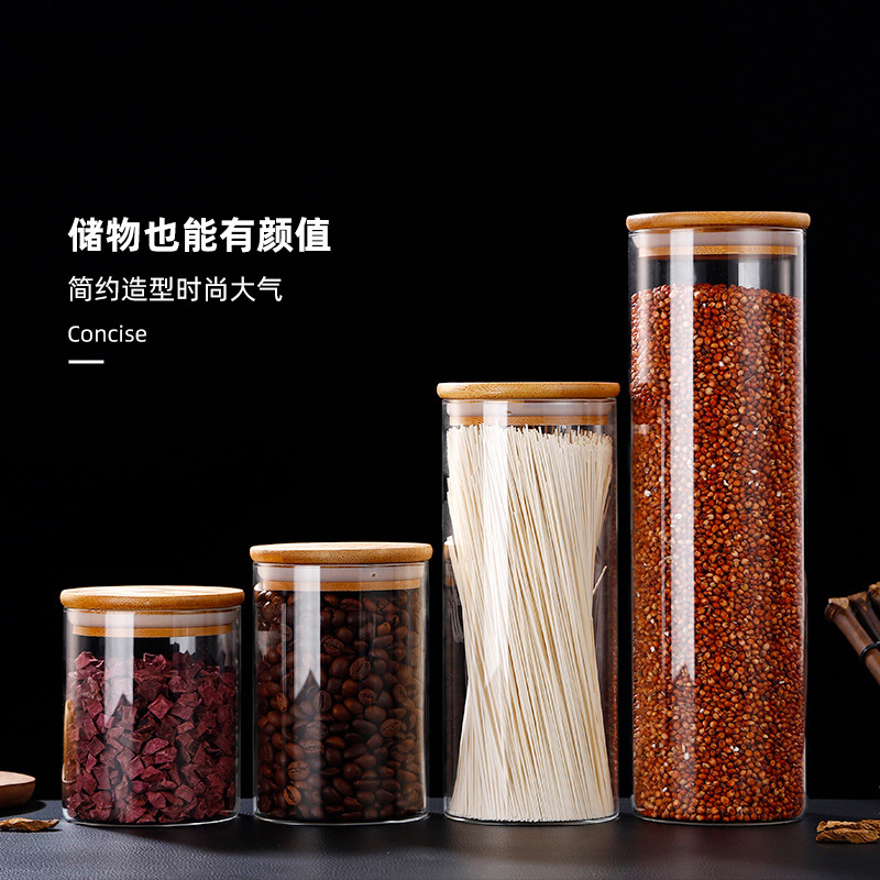 卸売り高ホウ素シリコンガラス密封缶雑穀貯蔵缶キッチン収納缶茶葉缶竹蓋缶キャンディー缶