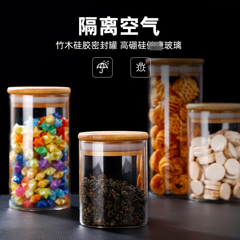 カスタム高ホウ素シリコンガラス密封缶雑穀貯蔵缶キッチン収納缶茶葉缶竹蓋缶キャンディー缶