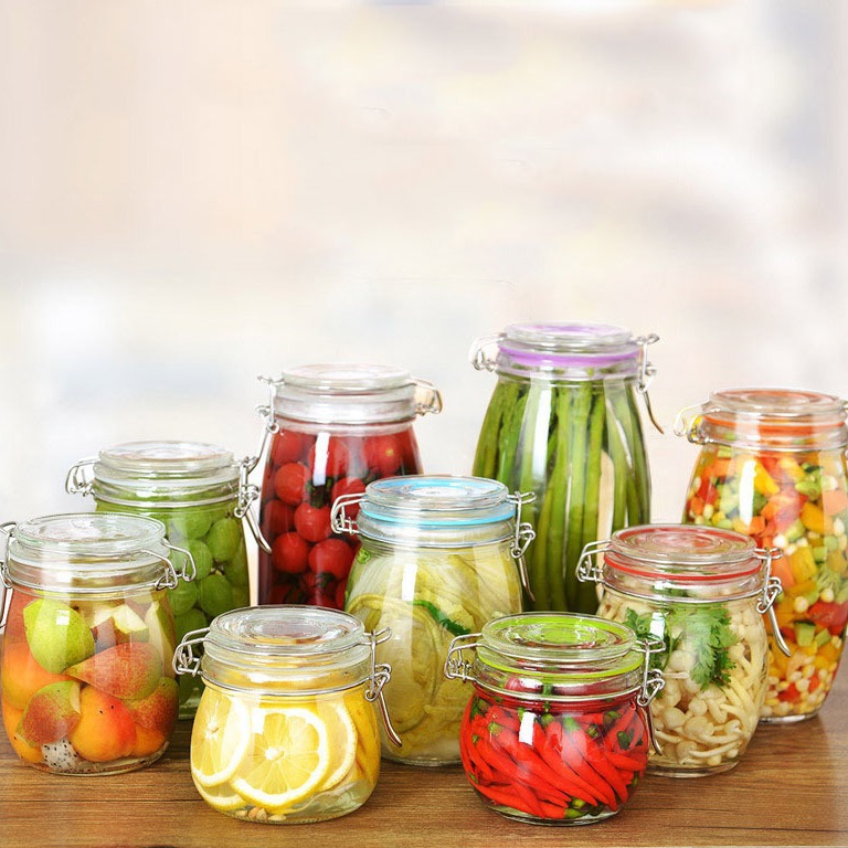 メーカーカスタム透明ガラス貯蔵タンクバックル密封ガラス瓶雑穀貯蔵味噌汁瓶台所収納タンク