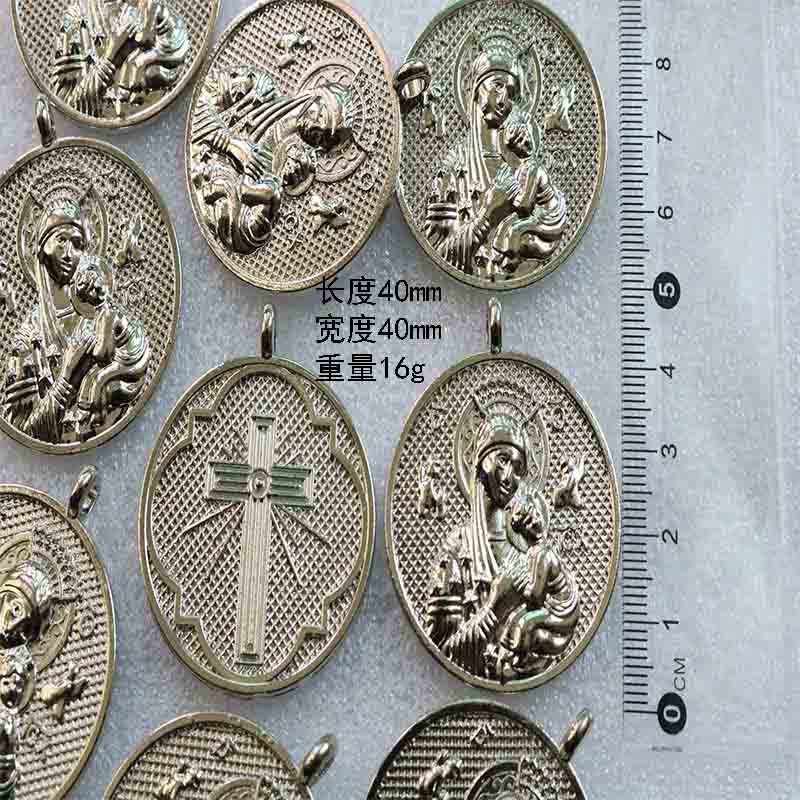 アマゾンの古い銀色のレリーフの聖母楕円ペンダントイエス宗教合金アクセサリーの卸売り