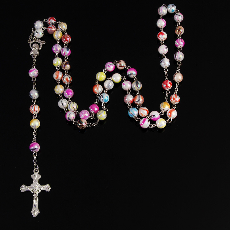 外国貿易ソース8ミリ樹脂十z架紋ネックレス樹脂十z架珠数珠ネックレス