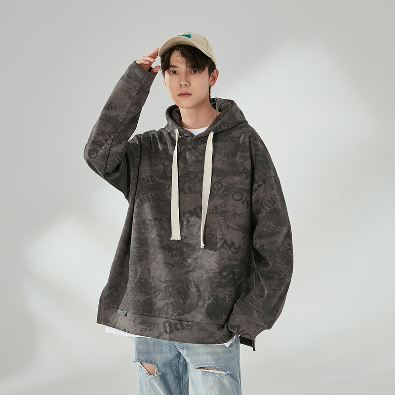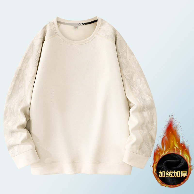 男性の冬の新型のベルベット長袖迷彩は保温服のファッションの大きいサイズのゆるいファッションの丸首の上着を厚くします。