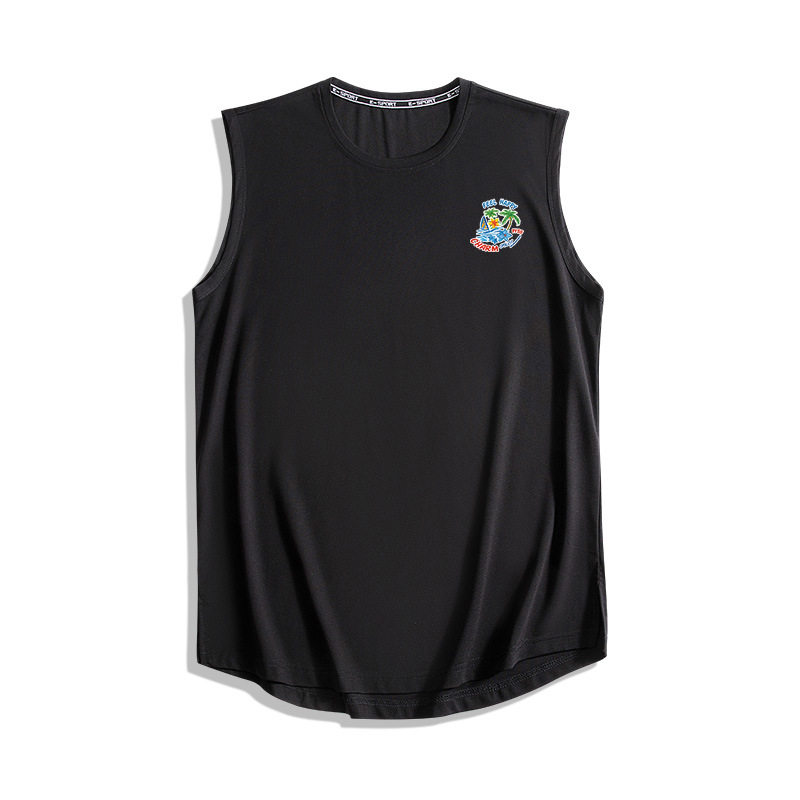 350斤の特大サイズの天糸ローマフィットネスベスト男性夏の丸襟運動袖なしtシャツのトレンドがゆるい