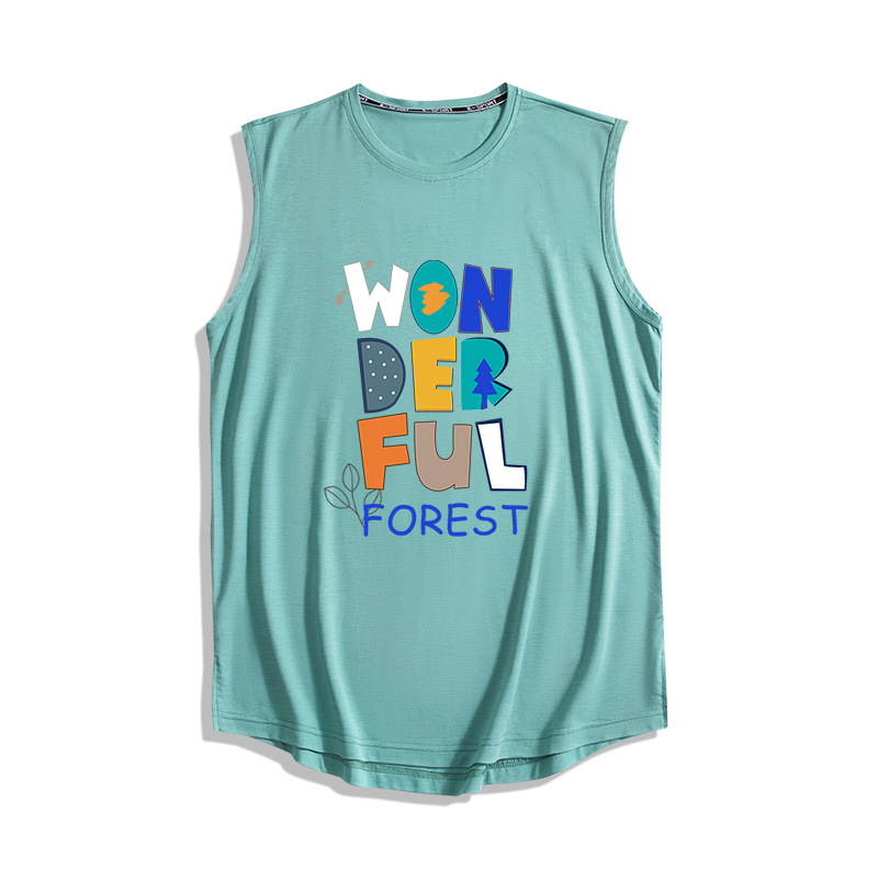 ベスト男夏の大衆デザイン感プリントカジュアル吸汗袖なしtシャツ韓国版ファッション流行上着