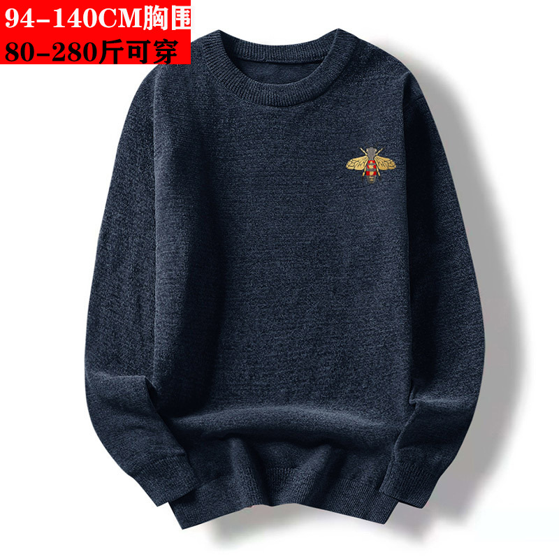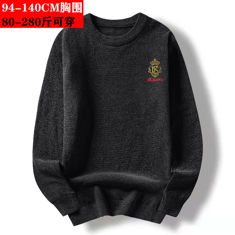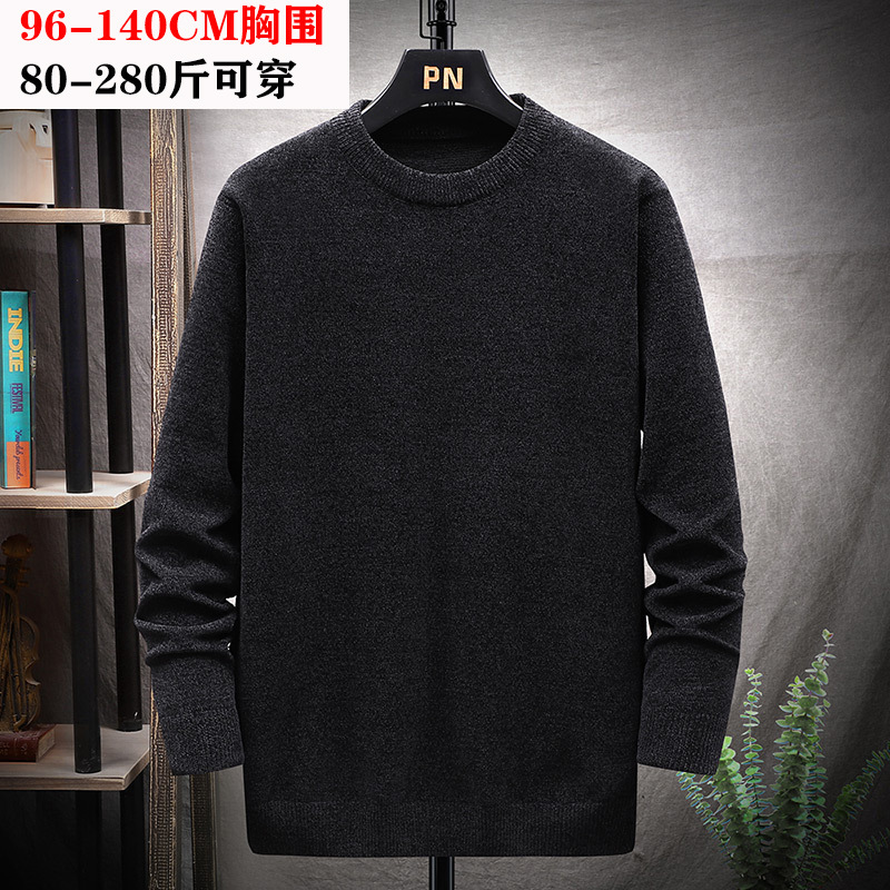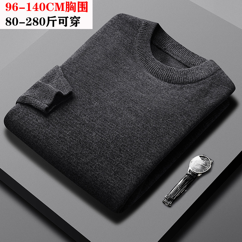 P80秋冬服中高年男性お父さんカジュアルプルオーバー丸首ニットセーター大きいサイズ無地セーター